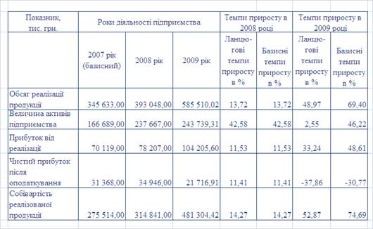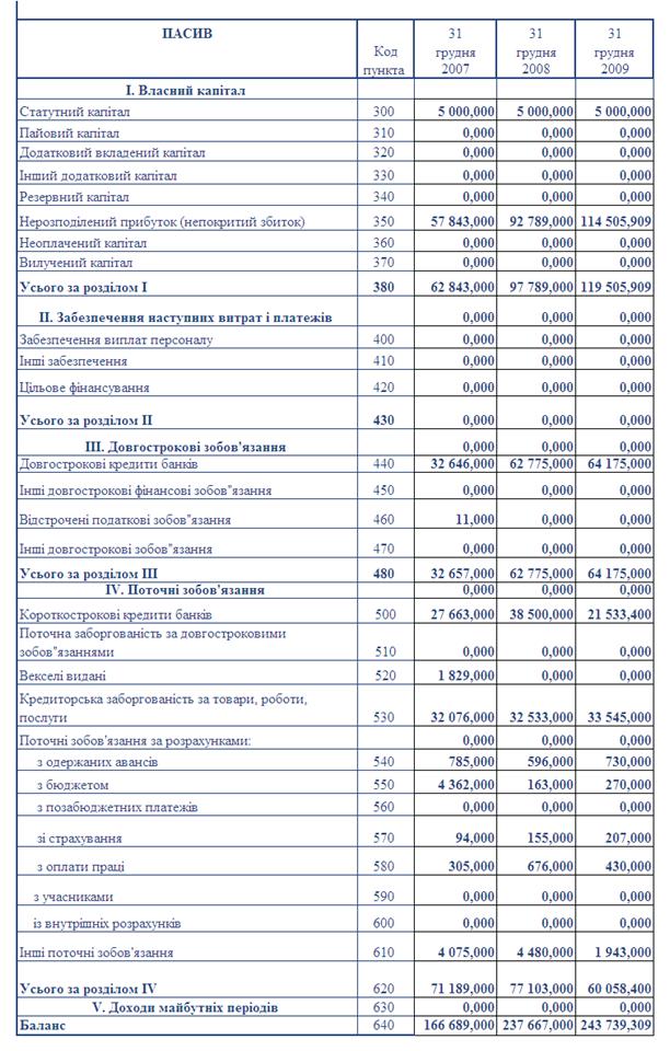 - при зростанні обсягів активів балансу у 2009 році відносно 2007 року на +46,2%, обсяг чистих валових доходів від реалізації продукції зріс у 2009 році відносно 2007 року на + 69,4%, що відповідає «золотому правилу» інтенсивного росту економіки підприємства;