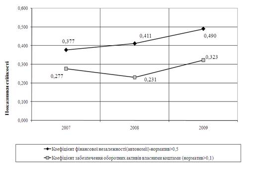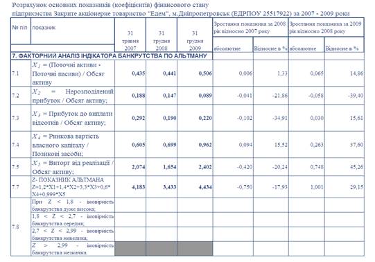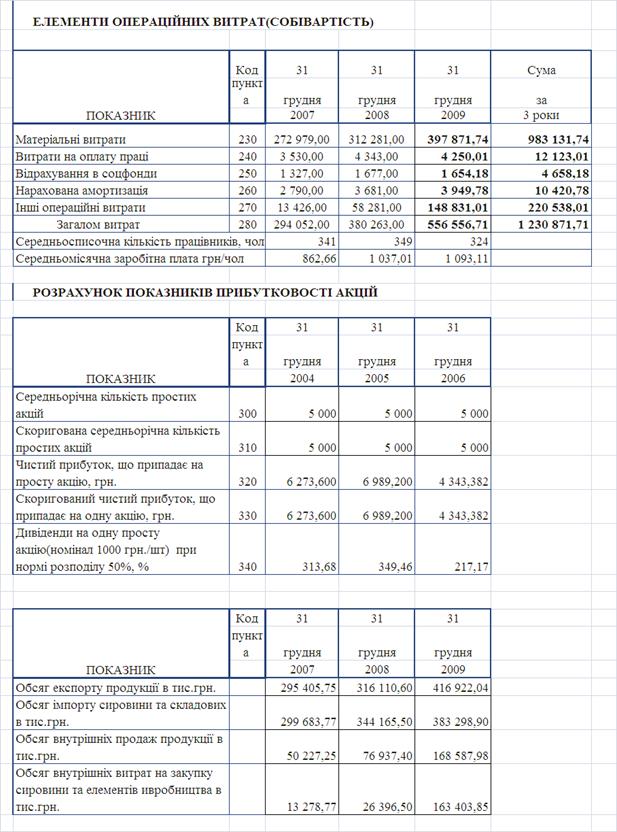 - при зростанні обсягів чистих валових доходів від реалізації продукції у 2009 році відносно 2007 року на + 69,4%, обсяг собівартості продукції у 2009 році відносно 2007 року зріс на +74,7%, а, відповідно, обсяг валового прибутку від реалізації 2009/2007 зріс тільки на +48,6% та обсяг чистого прибутку після оподаткування 2009/2007 зменшився на -30,8%, що не відповідає «золотому правилу» інтенсивного росту економіки підприємства, хоча ймовірність банкрутства підприємства – мінімальна.