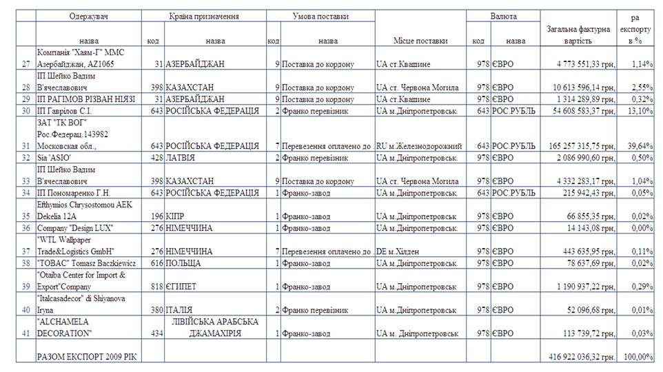 Основними покупцями експортної готової продукції – шпалер в ЗАТ «Едем» у 2007 - 2009 роках були фірми: