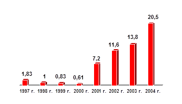 | 2003 | 1134,5 | 37,9 | 57,9 | 4,2 |