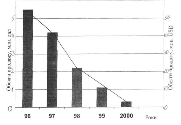 Згідно статистичних даних, наданих асоціацією "СОПАТ", в останні роки виробництво виноградного вина скоротилося з 12 млн.дал (1996р.) до 7,3 млн.дал - на 39,2%. Продаж вина на внутрішньому ринку з 1995 р. (9 млн.дал) скоротився на 59% і в минулому році склало тільки 3,7 млн.дал (по офіційним даним). 133]
