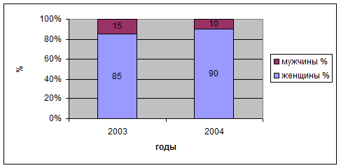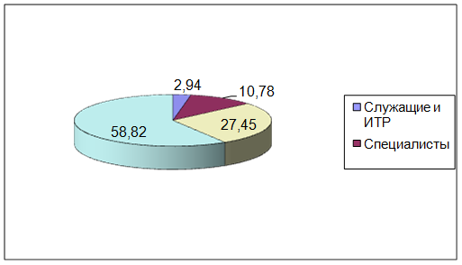 Штатная численность организации по данным 9 месяцев 2004 года – 613 человек. Из них административно- управленческий персонал – 395 человек, что составляет 64,4% от общей численности работающих.