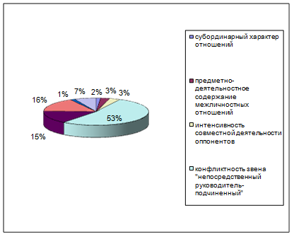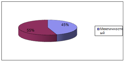 наибольшую долю в среди всех конфликтов в организации занимают межгрупповые конфликты (55 %)