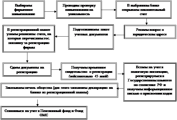 - постановка на учет в статистическом управлении, в районной налоговой инспекции, в пенсионном фонде, в районном комиссариате, в фонде социального страхования, в фонде медицинского страхования;