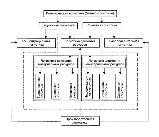 В современных условиях западные специалисты выделяют несколько видов логистики: логистику, связанную с обеспечением производства материалами (закупочная логистика); сбытовую (маркетинговую, или распределительную, логистику); производственную логистику. Выделяют также и транспортную логистику, которая, в сущности, является составной частью каждого из трех видов логистики. Неотъемлемой частью всех видов логистики является также обязательное наличие логистического информационного потока, включающего в себя сбор данных о товарном потоке, их передачу, обработку и систематизацию с последующей выдачей готовой информации. Эту подсистему логистики часто называют компьютерной логистикой. [7]