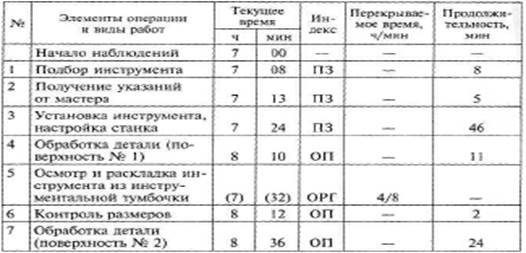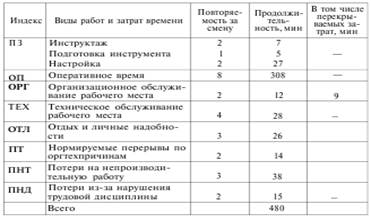 все виды затрат и потерь рабочего времени с выделением элементов операций и оперативного времени;