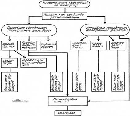 Подсчитано, что каждый разговор по телефону длится в среднем от 3 до 5 минут. Следовательно, в общей сложности в день на телефонное общение, например у руководителя, уходит около 2-2,5 часов.