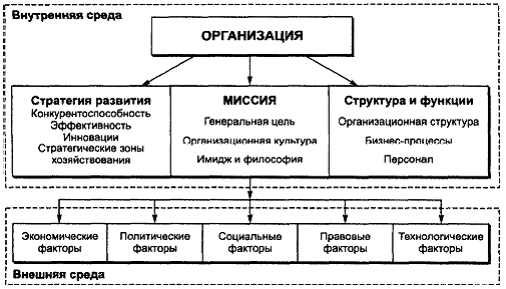 Таким образом, под организацией понимаются юридически оформленные, иерархически структурированные совокупности профессионально ориентированных людей (персонал), объединенных для решения какой-либо задачи, выполнения определенной совместной целенаправленной деятельности. Модель организации представлена на рис. 1.