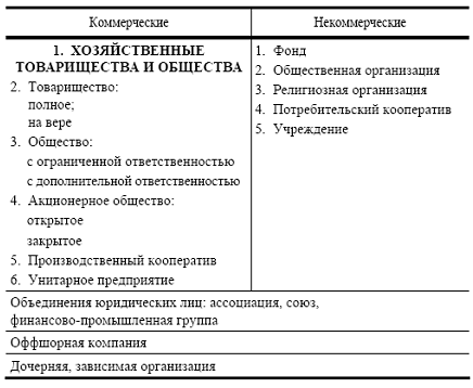 обособленное имущество и отвечает по своим обязательствам этим имуществом и личные неимущественные права, а также способна нести обязательства, быть истцом и ответчиком. Таким образом, термин "организация" отражает организационные аспекты (связи, структуру, статус). Организационно-правовые формы юридических лиц приведены в табл.1.