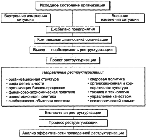 Реструктуризация является сложным и ответственным делом для организации и ее руководства, поэтому большое значение имеет формирование адекватного внешним и внутренним для организации условиям бизнес-плана или организационного проекта.