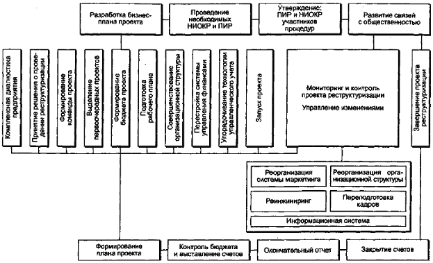 Процесс организации осуществления реструктуризации носит достаточно универсальный характер, свойственный реализации сложных проектов.