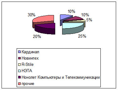 Наиболее сильным конкурентом для ОАО «НЭТА» является «Нонолет Компьютеры и Телекоммуникации», ООО «R-Stile» по результатам рейтинга относится к наименее сильным конкурентам, однако имеет неоспоримое преимущество – сеть розничных магазинов по г. Новосибирску. Это делает предприятие более доступным для потребителей - физических лиц. ЗАО «Кардинал» и «Нонолет Компьютеры и Телекоммуникации» же напротив, больше сотрудничают с фирмами, хотя и имеет собственные фирменные магазины. Следует отметить, что список конкурентов ОАО «НЭТА» можно продолжить такими фирмами как ЗАО «Новинтех», ООО «Премьер», ООО «Матрица».
