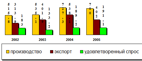 | Показатель, тыс. шт. | 2002 | 2003 | 2004 | 2005 |
