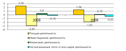 Структура денежного потока в 2008 – 2009 годах, млрд. руб.