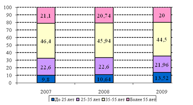 На предприятиях в основном работают люди в возрасте от 35-55 лет: