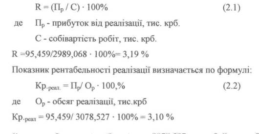 Аналіз економічної діяльності підприємства дозволяє зробити наступні висновки: рівень рентабельності робіт і реалізації досить невисокий, що характеризує підприємство як працююче неефективно. Як видно з результатів аналізу, підприємство за звітний період несе збитки у розмірі 115,186 тис. крб., що визначає незадовільний стан діяльності у сфері виробництва та надання послуг.