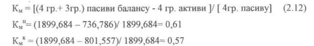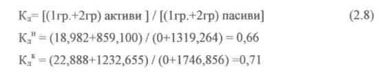 Ккл = 1 гр. активу балансу / (1 гр. + 2 гр. + 3 гр.) активи балансу. (2.14)