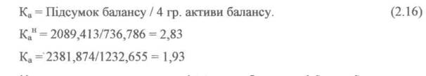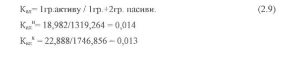 Кдз = 2 гр. активи балансу / (1 гр. + 2гр. + 3 гр.) активу балансу (2.15)