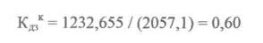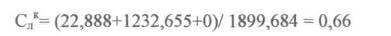 Ккл = 22,888 / (22,888+1232,655+801,557)- 22,888/2057,1=0,011