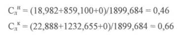 Ккл н = 18,982 /(18,982+859,100+0+736,786)=18,982/1614,686=0,012