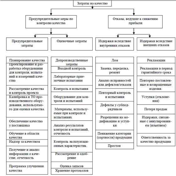 Затраты, связанные с качеством, или цена качества, представляют собой разность между фактической себестоимостью продукции или услуги и ее возможной стоимостью, определенной при условии отсутствия случаев предоставления услуг, не соответствующих стандарту, или возникновения дефектов, выявляемых в процессе изготовления или после поставки продукции потребителям.