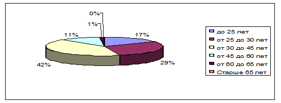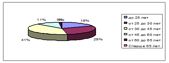 | Категория | до 25 лет | от 25 до 30 лет | от 30 до 45 лет | от 45 до 60 лет | от 60 до 65 лет | Старше 65 лет | Итого чел |