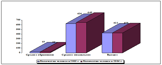 Таблица 7 - Распределение кадров предприятия в разрезе уровня образования работников в 2005-2006 гг.