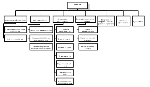 Подобная организационная структура является функционально-ориентированной. Каждое подразделение выполняет определенные функции. Основные бизнес-процессы компании проходят через все функциональные блоки, которые связаны друг с другом только через руководство компании. При таком подходе большинство вопросов приходится решать не на горизонтальном уровне, а подниматься на несколько уровней управления.