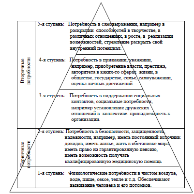 Американский социолог Абрахам Маслоу разделил потребности на первичные и вторичные и построил их в виде пирамиды[3] (рис. 1).