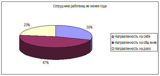 Гипотеза нашего исследования состоит в предположении о том, что существуют различия в потребностно-мотивационной сфере молодых специалистов, работающих менее года, и сотрудников организации, работающих более 1 года.