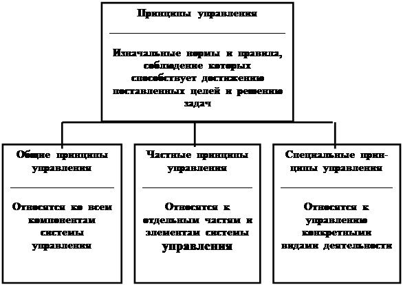 Принципы управления определяют закономерности формирования управляемой системы: ее структуры, методы воздействия на коллектив, формируют мотивацию поведения его членов, учитывают особенности технологии и технического оснащения управленческого труда. Искусство управления основывается на солидной теоретической базе, накопленной за тысячи лет человеческой цивилизацией, — на принципах, законах управления.