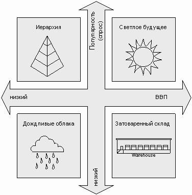 С другой стороны, сценарное планирование особенно необходимо для тех случаев, когда компания демонстрирует стратегию активного формирования рынка, инновационную стратегию – когда ею делаются крупные ставки, последствия которых могут быть очень серьезными для будущего организации. Разработку планов защитных действий в случае неблагоприятных последствий «крупных ставок» лучше всего осуществлять в рамках разработанных сценариев.