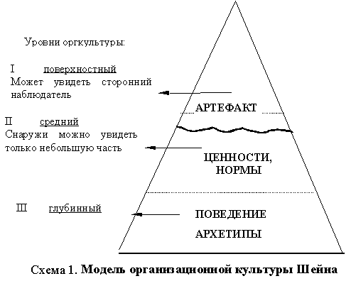 Э. Шайн (1985 г.): “Организационная культура - это комплекс базовых предположений, изобретённый, обнаруженный или разработанный группой для того, чтобы научиться справляться с проблемами внешней адаптации и внутренней интеграции. Необходимо, чтобы этот комплекс функционировал достаточно долго, подтвердил свою состоятельность, и потому он должен передаваться новым членам организации как правильный образ мышления и чувств в отношении упомянутых проблем”.