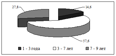 Стаж работы на данном предприятии составляет в среднем – 5 лет. Структура работников в зависимости от стажа работы представлена на рис. 4.