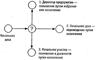 По истечении определенного периода, допустим 5 лет работы в должности начальника цеха, он проходит переподготовку в школе менеджеров с полным комплексом необходимых исследований. Если его профессиональные знания и умения, потенциал и квалификация, здоровье и работоспособность высокие, а взаимоотношения в трудовом коллективе бесконфликтные, то он рекомендуется к занятию более высокой должности посредством назначения или выборов.