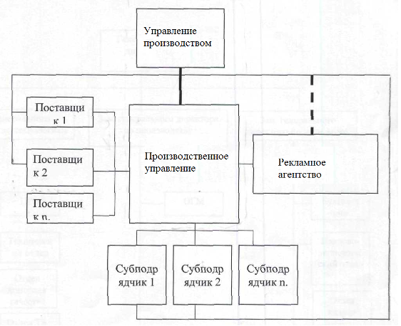 2. На втором этапе происходит формирование сетевой модели организации путем передачи фирмой части управленческих функций управлению объектами, выводу из нее непрофильных производств и формализации отношений с поставщиками.