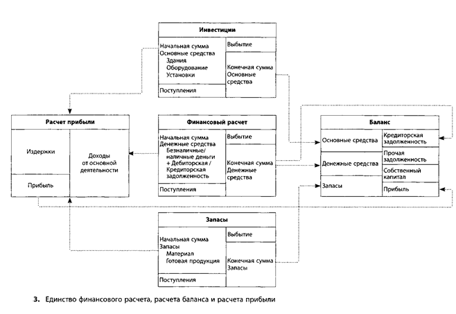 Расчет прибыли, балансовый и финансовый расчеты неразделимо связаны. Схема на рис. 2.3 показывает единство системы учета и существующие взаимосвязи.