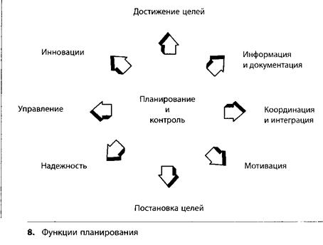 Планирование является необходимым инструментом обеспечения функционирования предприятия. Оно необходимо для преодоления неизвестности и рисков будущего и вносит значительный вклад в координацию процессов на предприятии. Обзор основных функций планирования показан на рис. 2.8.