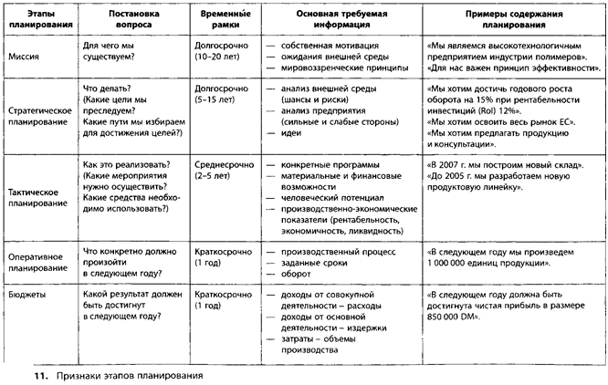 В управленческом процессе разные величины имеют различный временной характер. Так, например, ликвидность является краткосрочной управленческой величиной. Прибыль, определяемая на основе сопоставления расходов и доходов, является, скорее, среднесрочной управленческой величиной, а потенциальная прибыль, в значительной степени ориентирующаяся на рыночные позиции и потребности, относится к долгосрочным управленческим величинам. Система планирования должна учитывать такое положение вещей и подразделяться соответственно на краткосрочное, среднесрочное и долгосрочное планирование.