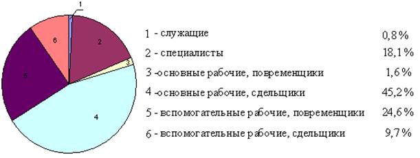 Как видим, на предприятии наблюдается снижение по численности всех категорий, кроме специалистов и основных рабочих-повременщиков. По сравнению с 2006 годом в 2007 году численность ППП сократилась на 0,8 %. Абсолютная экономия численности всех работающих составила 2 человека.