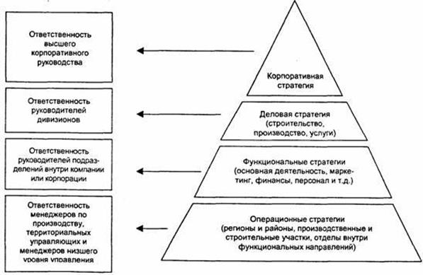 Организационно за реализацию стратегии на уровне функциональной области отвечает главный специалист (гл. инженер, директор по финансам), на уровне предприятия – генеральный директор либо директор департамента, на уровне группы предприятий – коллегиальный орган (управление, совет директоров).