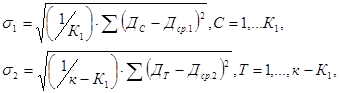 2. Вся совокупность организаций рассматриваемого рынка делится на два сектора, для которых значения долей больше или меньше среднего: