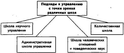 Подход с позиции выделения различных школ в управлении позволяет рассматривать управление с различных точек зрения - с позиции школы научного менеджмента, административного управления, человеческих отношений, науки о поведении, а также науки управления и количественных методов.