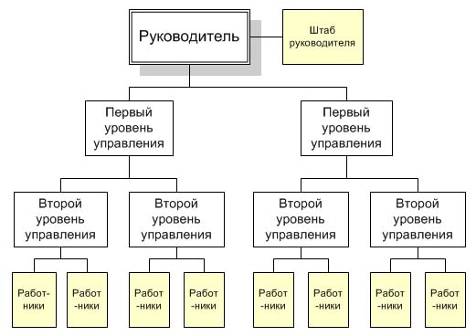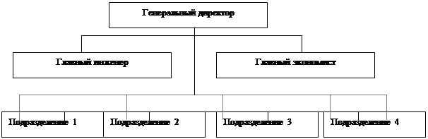 Такая структура структура отличается высокой значимостью линейного руководства и слабостью функционального управления. Подобные структуры могут использоваться в малых предприятиях, а также в подразделениях предприятий (рис. 2)
