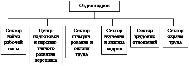 Универсальной структуры кадровой службы не существует. Тем не менее, она может включать в себя следующие отделы: