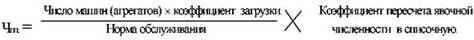 Применяемый в расчетных формулах коэффициент пересчета явочной численности в списочную позволяет учесть возможное отсутствие персонала на рабочих местах в течение планового периода времени изза болезни; очередного и дополнительного отпуска, отпуска по учебе, прочих причин неявок. Коэффициент пересчета определяется отношением числа фактически рабочих дней к числу календарных или номинальных дней. Для планирования численности персонала можно применить следующую формулу: