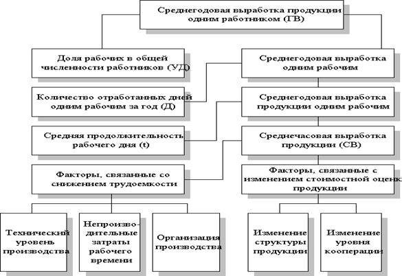 Рис. 1. Взаимосвязь факторов, определяющих среднегодовую выработку продукции работника предприятия