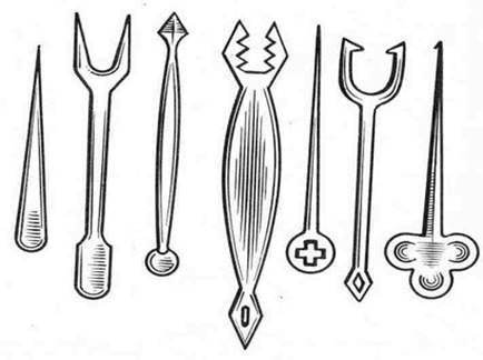 В этот примерный перечень нужно включить также пластмассовые вилочки и шпажки, применяемые при подаче десертных закусок и гарниров к коктейлям (рис 3). Для кратковременного хранения льда бармену понадобится чаша-термос, которую размещают непосредственно на рабочем месте. Здесь же ставят и несколько стеклянных или керамических чаш (вместимостью до 2 л) для орехов, тертого шоколада, цукатов, изюма, ягод и прочей продукции, необходимой при оформлении и гарнировании изделий. Нужна бармену также маленькая разделочная доска для нарезки цитрусовых и других плодов и продуктов.