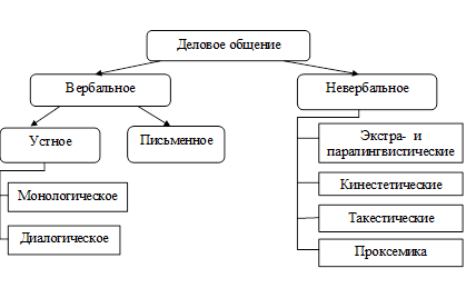 Вербальное деловое общение в свою очередь делиться на устную и письменную речь. Наглядная классификация представлена на рисунке 1.4.