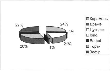 Середній асортимент українських кондитерських фабрик на сьогоднішній час складає не менше сімдесят найменувань. В деяких підприємств асортиментний ряд нараховує більше 200 позицій і він продовжує зростати (Табл. 1).